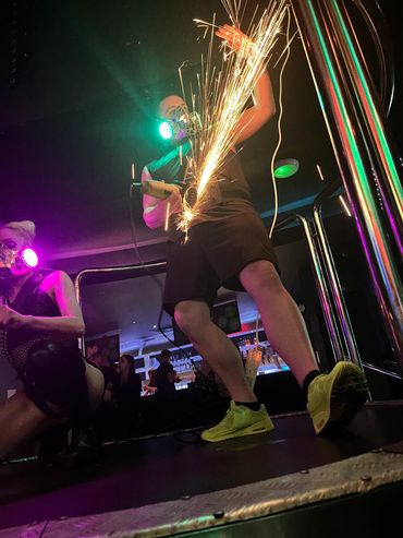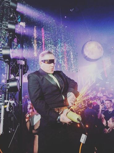 Looking for something exciting and visually mind blowing? Why not book one of our grinding acts? Watch as golden sparks fly into the air as our grinding performers elegantly run their blades onto the belt, causing a golden explosion and a fountain like reaction. Suitable for indoor and outdoor events
