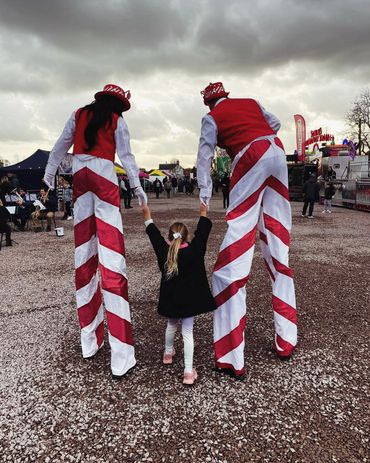Be the talk of the town with our dazzling Stilt Walkers. Our friendly team will have you up dancing posing for pictures and greeting your guests.
